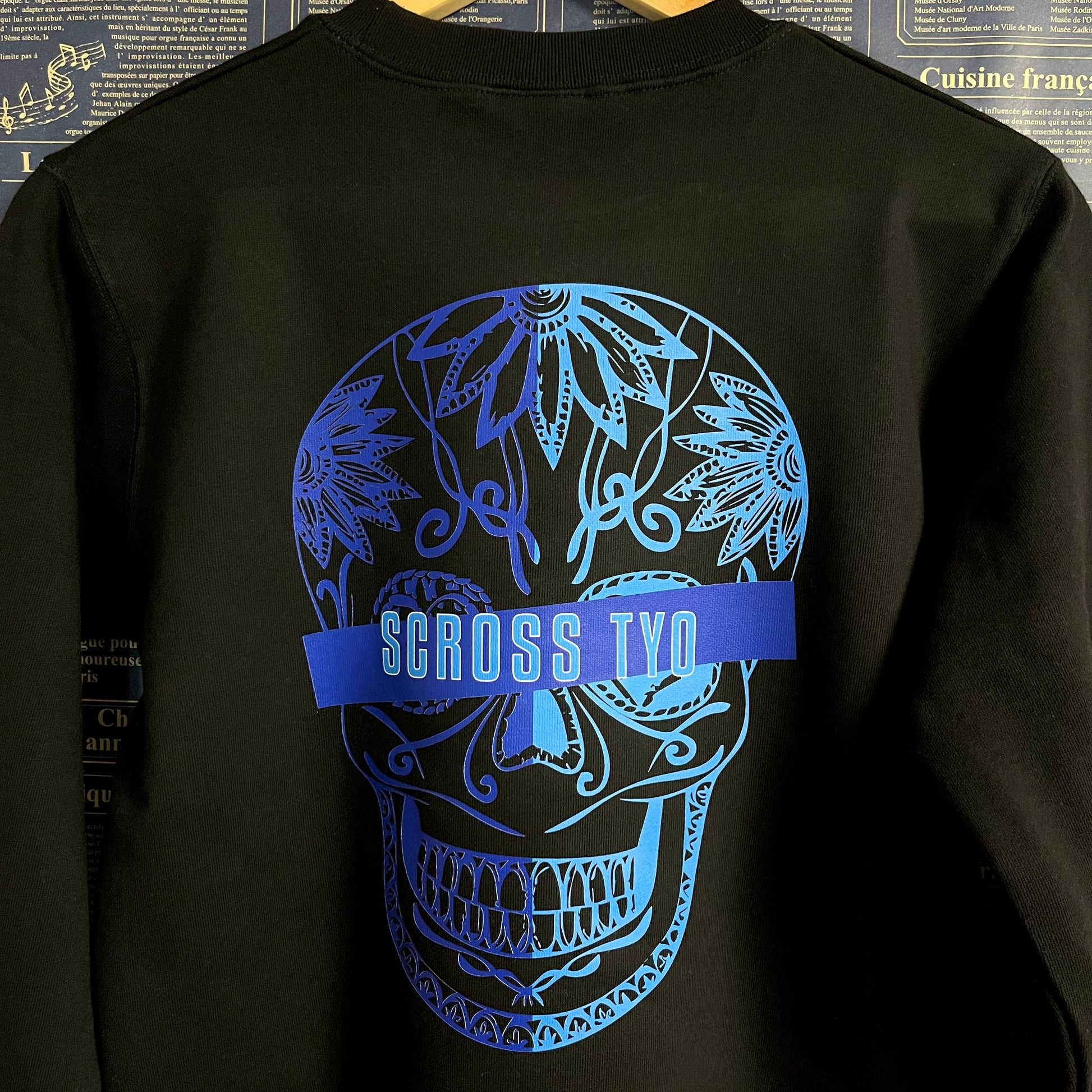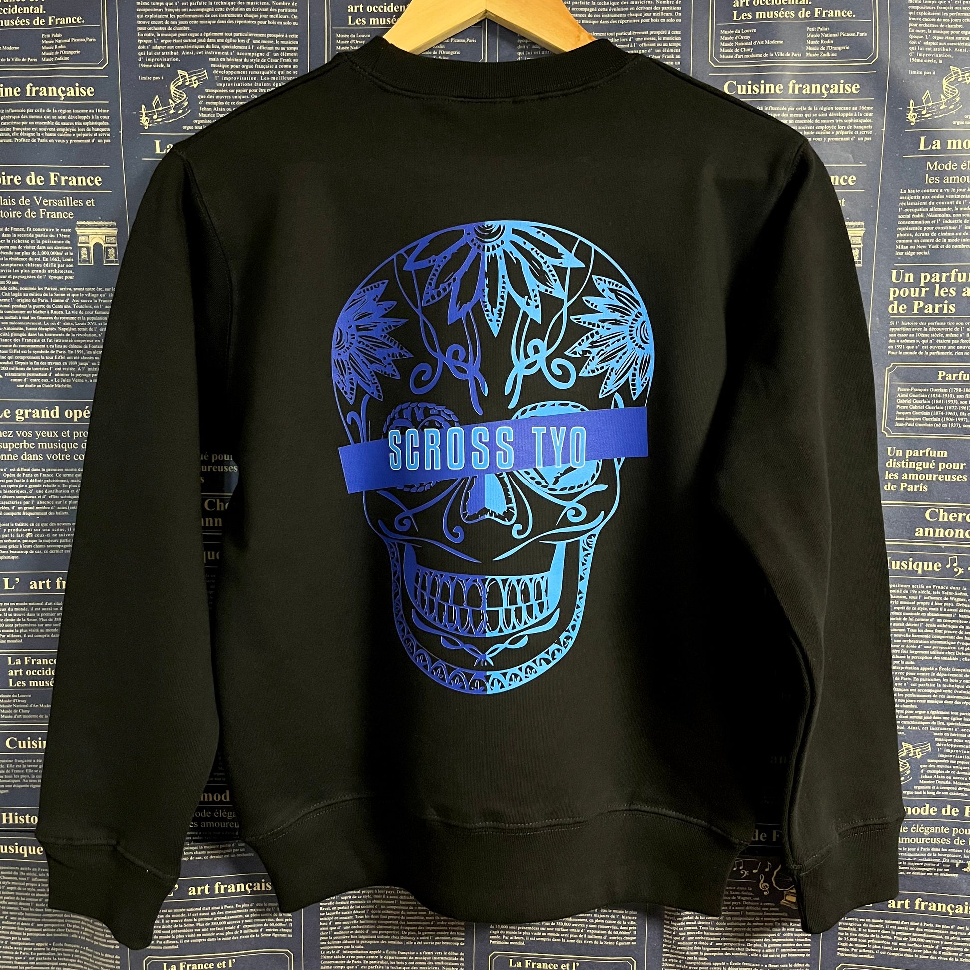 背中に大胆なskullのビッグプリント、胸元にロゴプリントが施されたSCROSS TYO 大人気のskullデザイン。