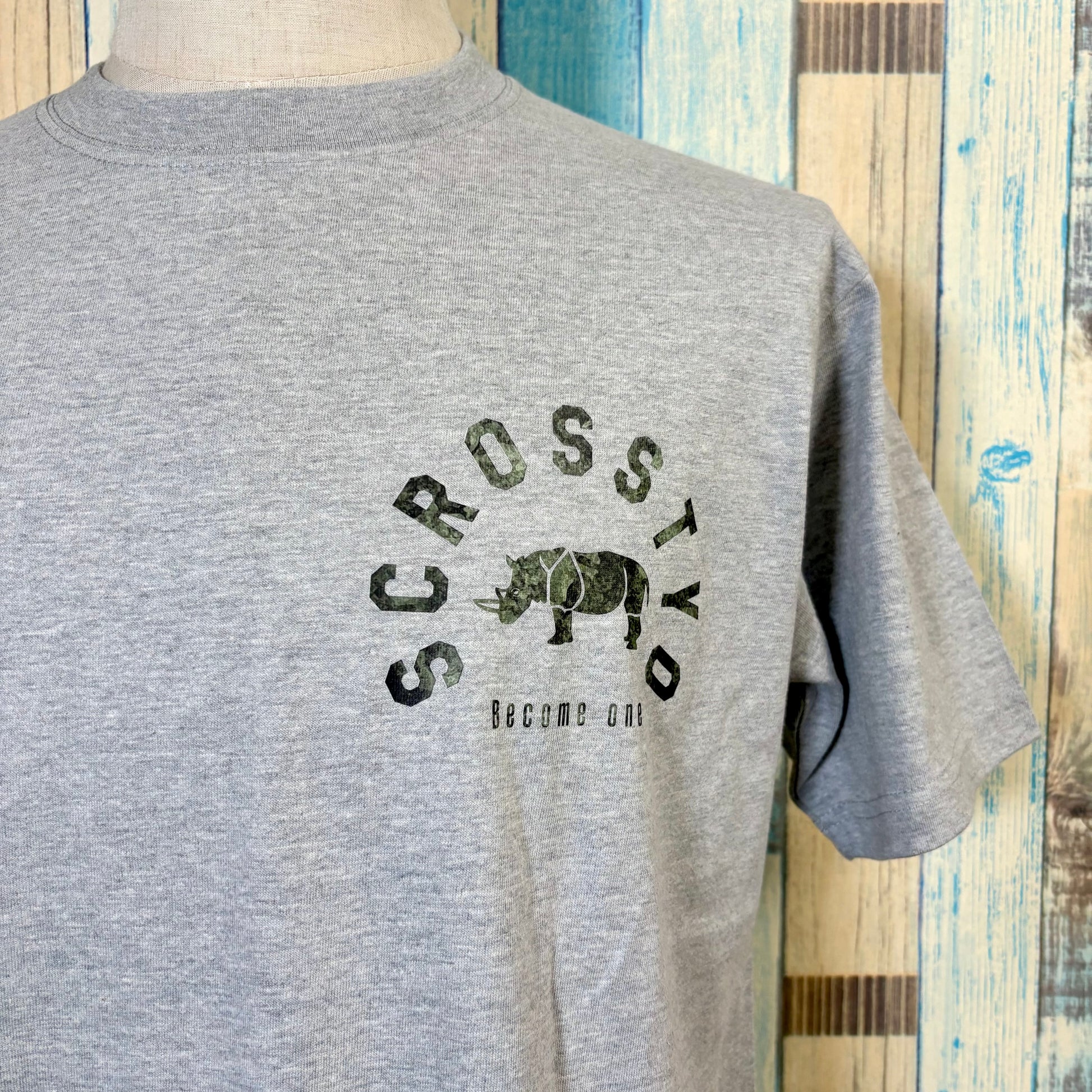 SCROSS TYO Rhino(グリーン迷彩) -Become one- プリントTシャツ